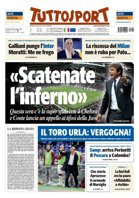 TUTTOSPORT CONTE – Antonio Conte vuole una bolgia per questa sera contro il Chelsea.