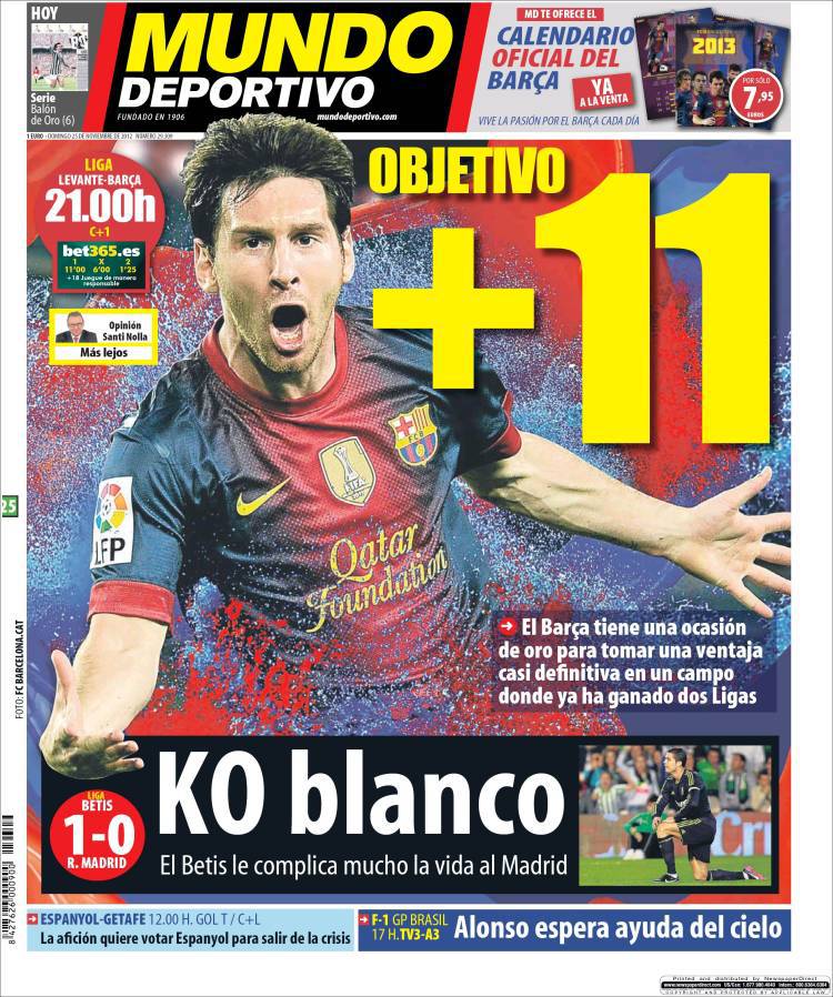 RASSEGNA STAMPA BARCELLONA – La sconfitta del Real Madrid contro il Real Betis consente al Barcellona di prendere il largo in classifica e staccare prepotentemente gli uomini di Mourinho. L’obiettivo dei blaugrana è battere il Levante e andare a +11 sul Real.