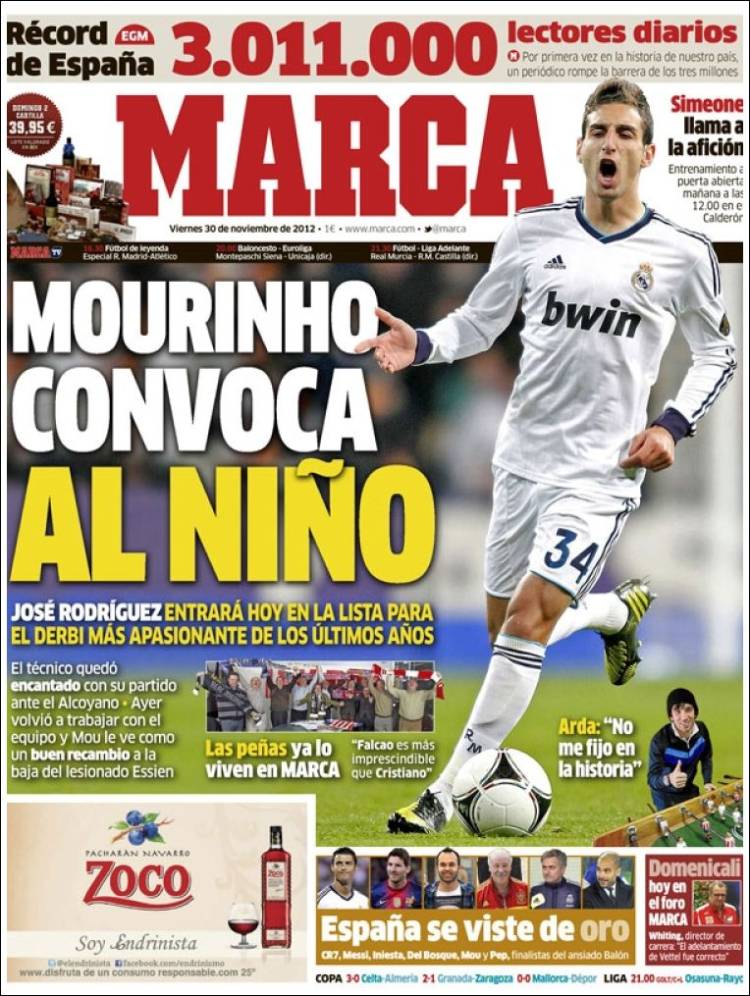 MARCA MOURINHO – Mourinho convoca in prima squadra il giovane José Rodriguez, talento classe ’94 della cantera del Real Madrid.