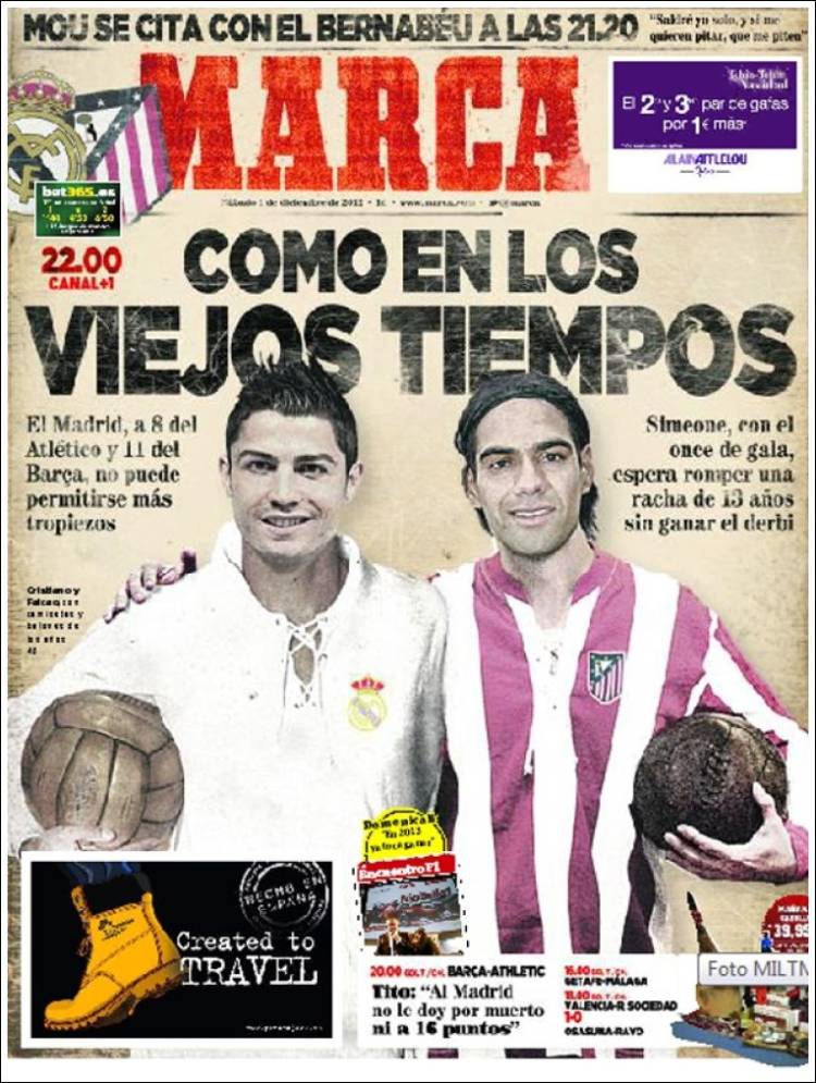 Marca: Come ai vecchi tempi 01/12/2012 di Admin3 MARCA REAL MADRID ATLETICO – Questa sera derby di Madrid tra il Real di Ronaldo e l’Atletico di Falcao. La redazione di Calciomercatonews.com