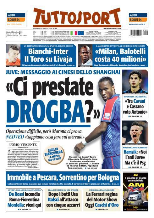 TUTTOSPORT DROGBA – La Juventus avrebbe chiesto il prestito del forte centravanti ivoriano.