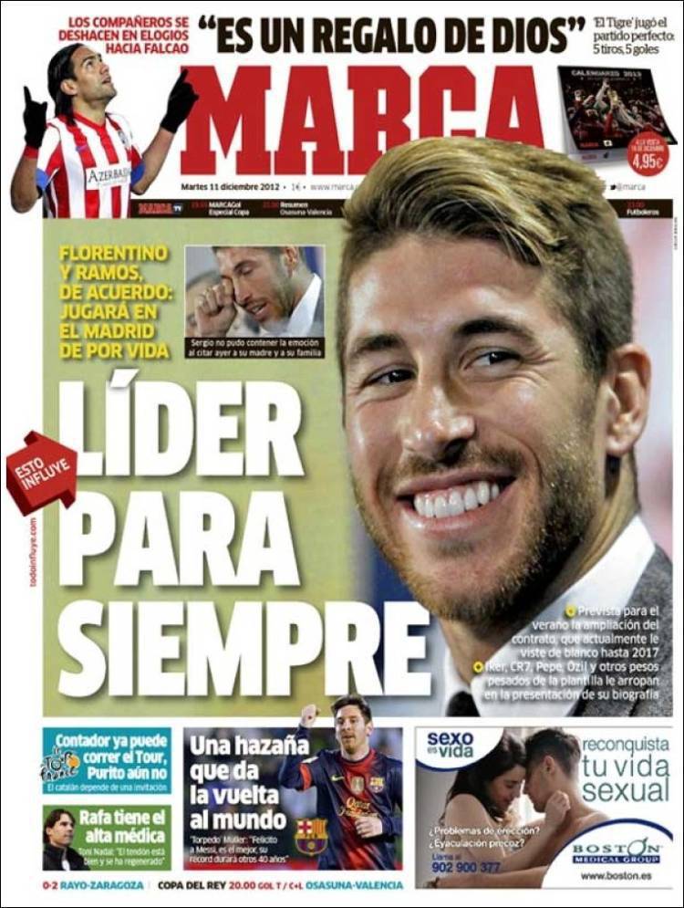 MARCA RAMOS – Sergio Ramos giocherà nel Real Madrid per sempre. Questo l’accordo con il presidente Perez.