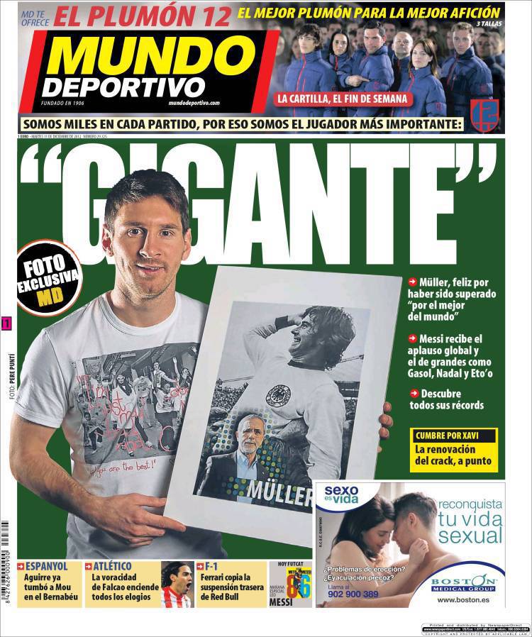MUNDO DEPORTIVO MESSI – Sul quotidiano Mundo Deportivo si parla di Messi che domenica ha superato il record di Gerd Muller.