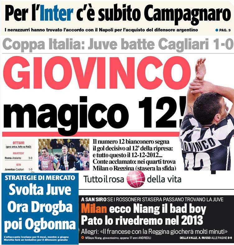 RASSEGNA STAMPA – Di seguito i titoli principali dei tre quotidiani sportivi La Gazzetta dello Sport, Corriere dello Sport e Tuttosport, relativi a Juventus, Inter e Milan.