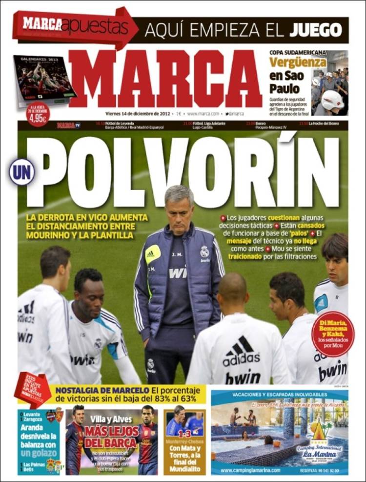 MARCA MOURINHO – Sul quotidiano Marca si parla di Mourinho che è molto deluso dopo la sconfitta contro il Celta Vigo.