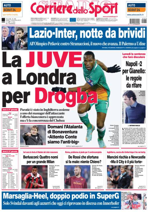 Corriere dello Sport: La Juve a Londra per Drogba 15/12/2012 di Admin3 CORRIERE JUVENTUS DROGBA – Sul Corriere dello Sport si parla di Drogba. La Juventus insiste. La redazione di Calciomercatonews.com