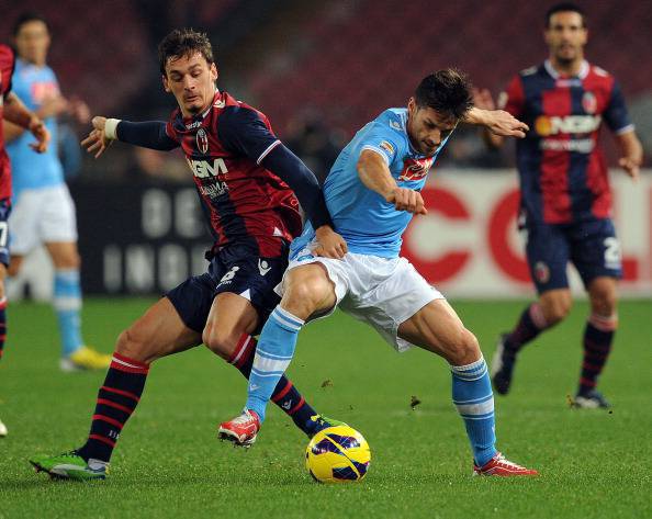 NAPOLI BOLOGNA PAGELLE VOTI – Arriva un risultato a sorpresa nel posticipo di questa 17esima giornata di Serie A. Davanti al pubblico del San Paolo, il Napoli viene sconfitto per 3-2 dal Bologna. Il primo tempo termina con i rossoblu in vantaggio, grazie alla rete siglata da Gabbiadini dopo dieci minuti dall’inizio della partita. Nella ripresa, tra il 50′ e il 70′, la squadra di Mazzarri riesce però a ribaltare il risultato, in virtù delle reti di Gamberini e Cavani. Alla fine, però, accade l’insospettabile. All’86’ Konè segna un gran gol in rovesciata, mentre ad un minuto dal novantesimo è Portanova a firmare la rimonta dei felsinei. Di seguito le pagelle della gara.