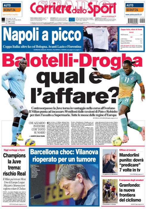 Corriere dello Sport: Balotelli-Drogba quale è l’affare? 20/12/2012 di Admin3 CORRIERE BALOTELLI DROGBA – Sul Corriere dello Sport si parla di Drogba-Balotelli, chiedendo ai lettori quale sarebbe l’affare giusto. La redazione di Calciomercatonews.com