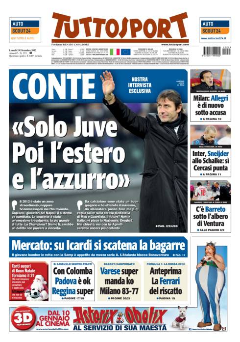 TUTTOSPORT CONTE – Su Tuttosport parla in esclusiva Conte che svela il proprio futuro.