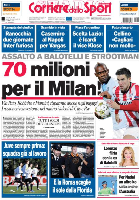 Corriere dello Sport: 70 milioni per il Milan! 29/12/2012 di admin CORRIERE DELLO SPORT PRIMA PAGINA – Poco più in basso potrete trovare la prima pagina del quotidiano Corriere dello Sport.