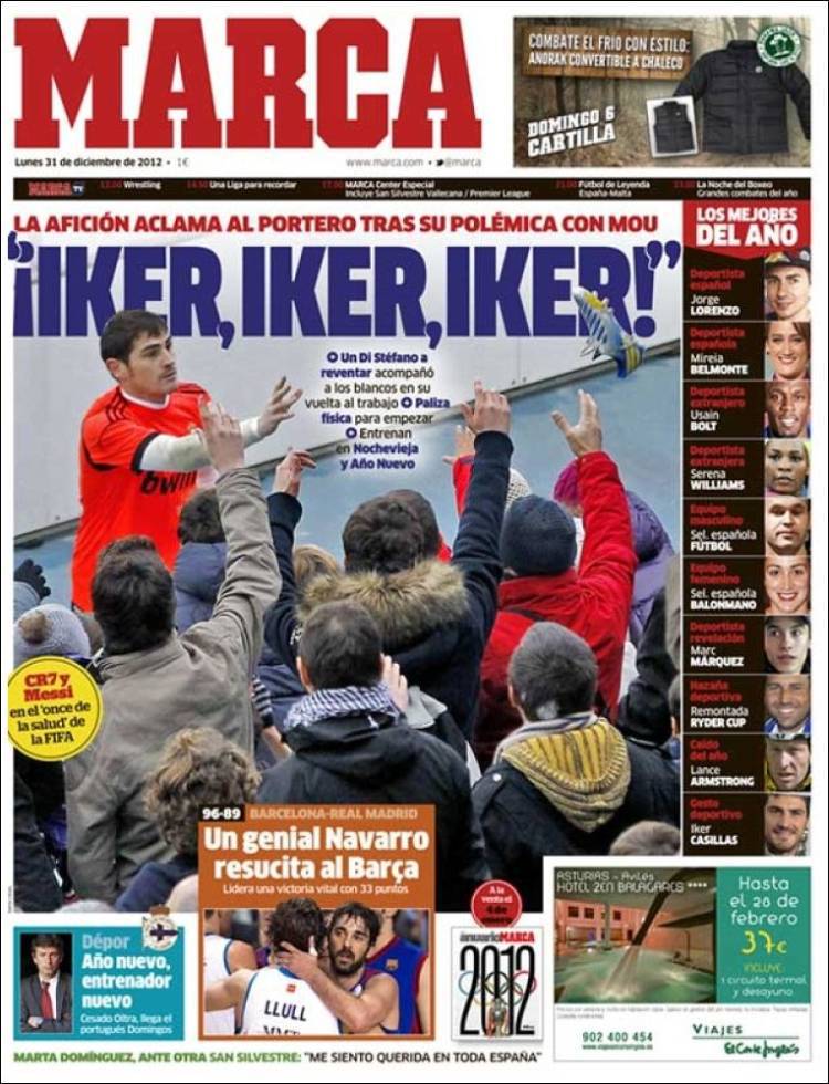 MARCA CASILLAS – Sul quotidiano Marca si parla di Casillas, portiere del Real Madrid, acclamato dalla folla.