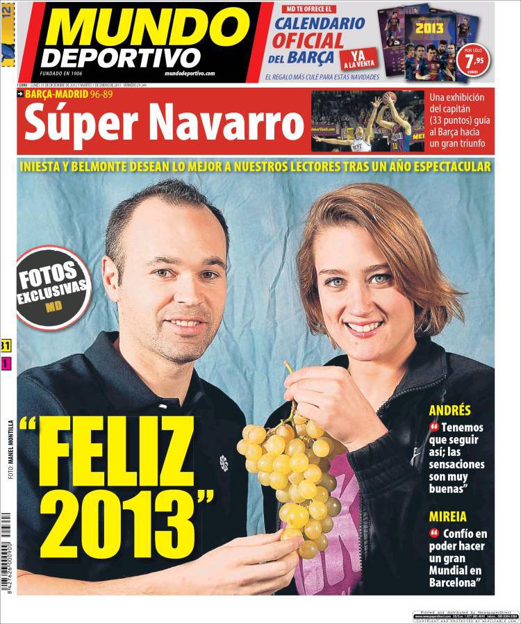 MUNDO DEPORTIVO INIESTA – Sul quotidiano Mundo Deportivo auguri speciali da due campioni come Iniesta e Belmonte.