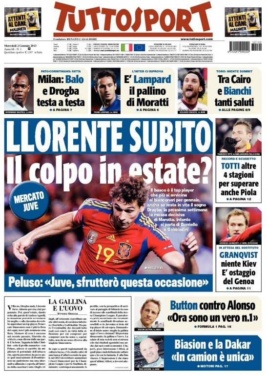 TUTTOSPORT LLORENTE – Su Tuttosport si parla di Llorente che potrebbe arrivare già a gennaio.