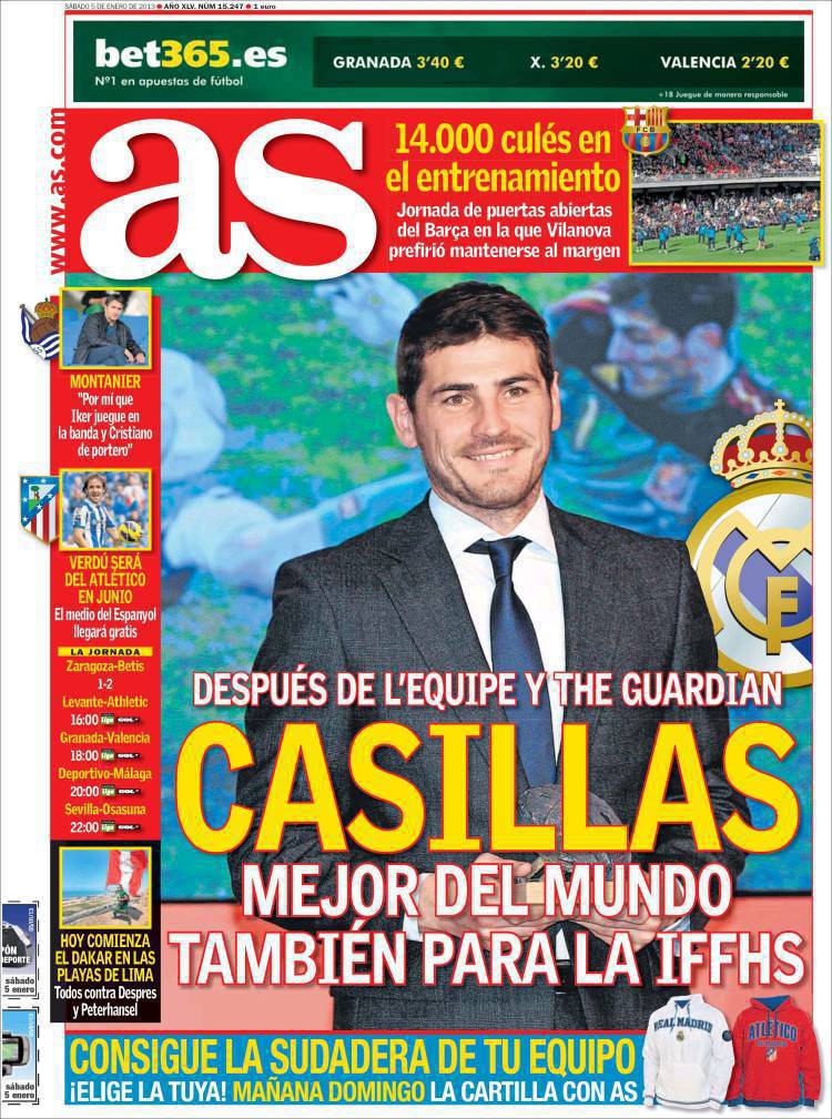 AS CASILLAS – Sul quotidiano As si parla di Casillas nominato miglior portiere del mondo.
