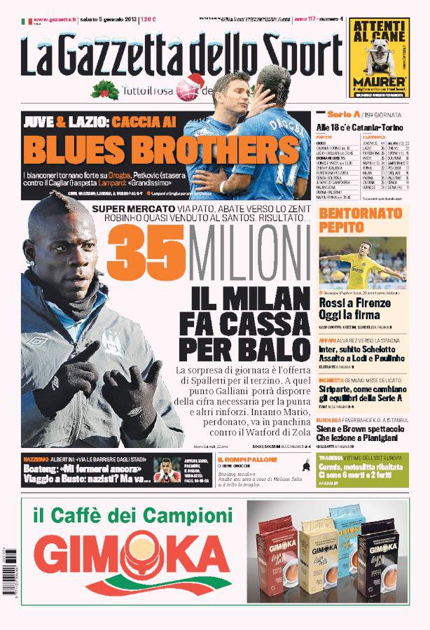 GAZZETTA MILAN – Balotelli si avvicina al Milan che è vicino a incassare quasi 35 milioni di euro.