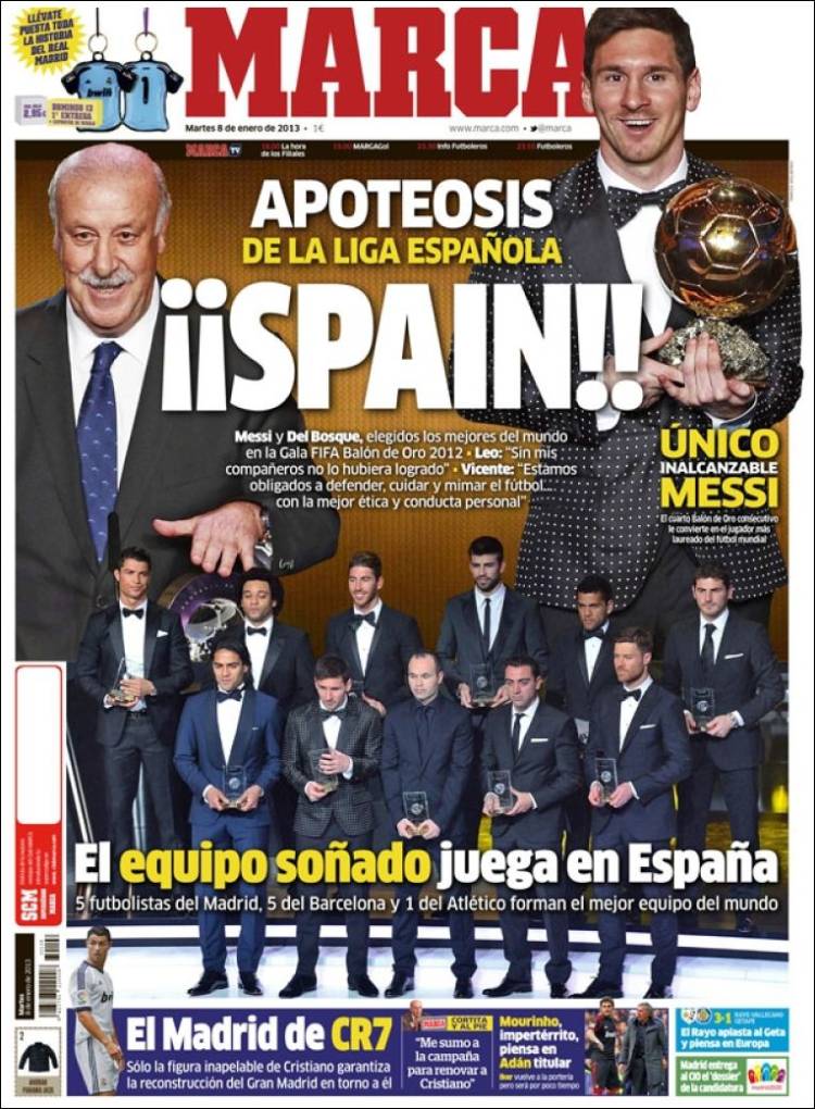 MARCA LIGA – La Liga viene acclamata a Zurigo con Messi pallone d’Oro e Del Bosque vincitore del premio miglior tecnico dell’anno.
