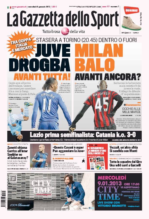 GAZZETTA JUVENTUS MILAN – Sulla Gazzetta dello Sport si parla di Juventus e Milan che questa sera si sfideranno nei quarti di finale di Coppa Italia.