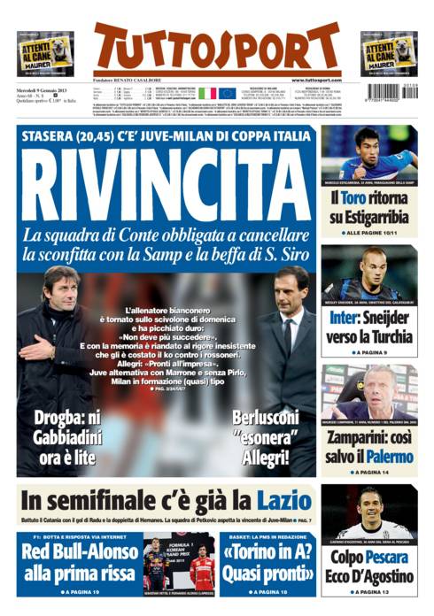 Tuttosport: Rivincita 09/01/2013 di Admin3 TUTTOSPORT RIVINCITA – Questa sera quarto di finale di Coppa Italia tra Juventus e Milan. La redazione di Calciomercatonews.com