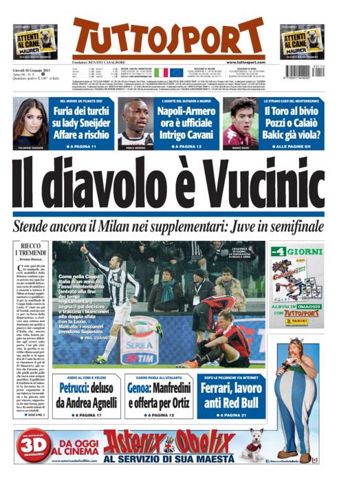 TUTTOSPORT VUCINIC – Su Tuttosport si parla di Vucinic che ha regalato la semifinale di Coppa Italia alla Juventus.