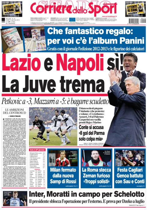 CORRIERE LAZIO NAPOLI JUVENTUS – Sul Corriere dello Sport si parla della Lazio e del Napoli che sono pronti a duellare con la Juventus.