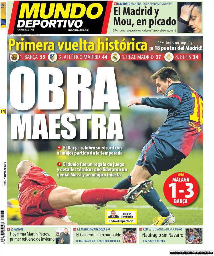 MUNDO DEPORTIVO BARCELLONA – Sul quotidiano Mundo Deportivo si parla del Barcellona che vincendo contro il Malaga aumenta il vantaggio sulle inseguitrici.