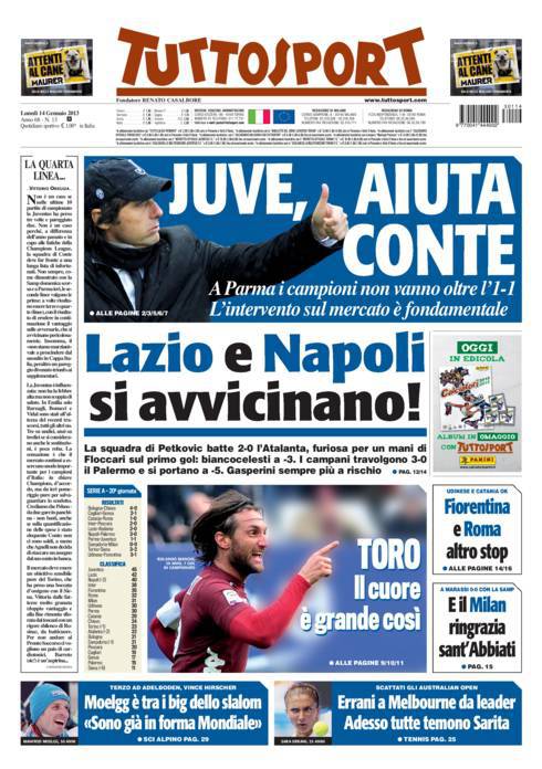 TUTTOSPORT JUVENTUS CONTE – Su Tuttosport si parla della Juventus che ha bisogno di un grande centravanti.