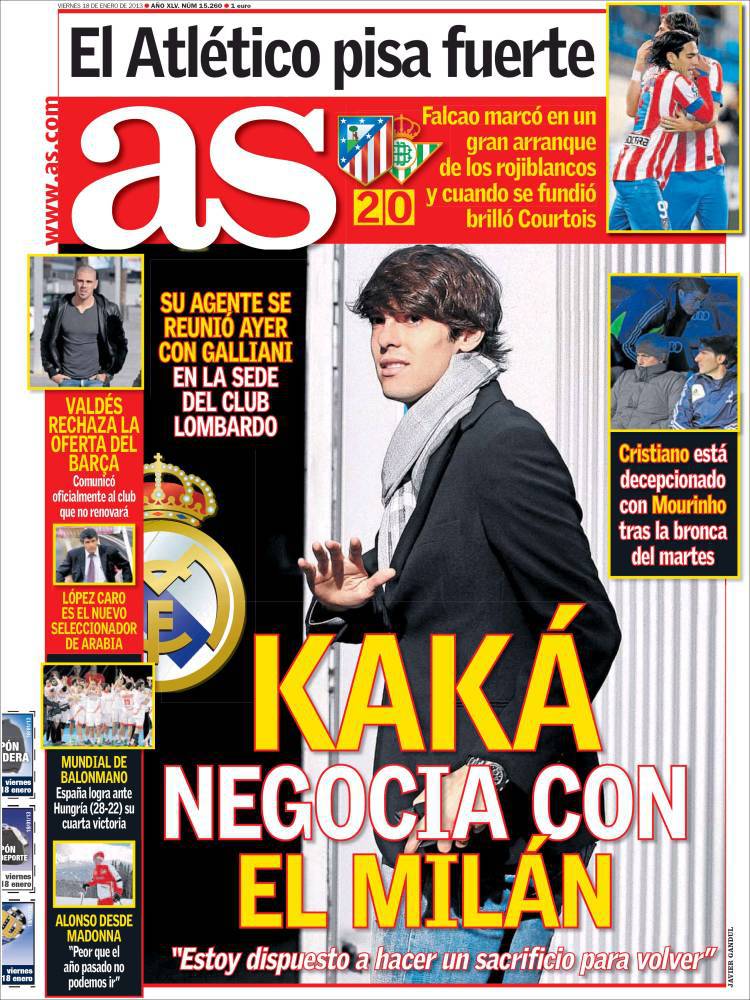 AS KAKA’ – Sul quotidiano As si parla di Kakà che sta trattando con il Milan.