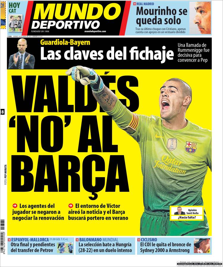 MUNDO DEPORTIVO VALDES – Sul quotidiano Mundo Deportivo si parla di Valdes che non vuole rinnovare il contratto con il Barcellona.