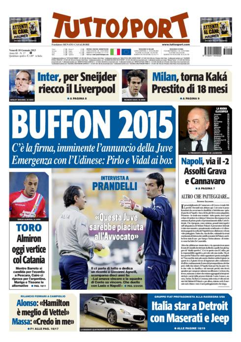 TUTTOSPORT BUFFON – E’ praticamente fatta per il rinnovo di Buffon fino al 2015.