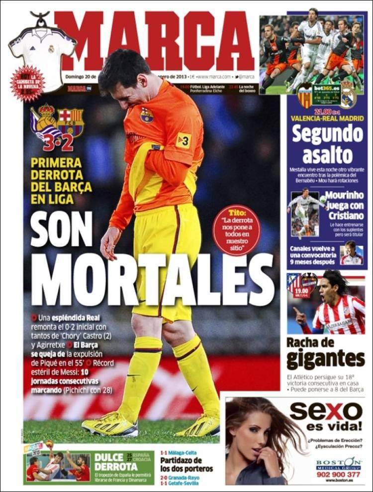 BARCELLONA REAL MADRID – Anche il Barcellona si dimostra una squadra mortale. Prima sconfitta dei blaugrana in Liga. Una splendida rimonta del Real Saragozza regala al campionato spagnolo la prima sconfitta degli extraterrestri blaugrana. Il Barcellona si porta sul 2-0 ma il Real riesce a rimontare per 3-2.