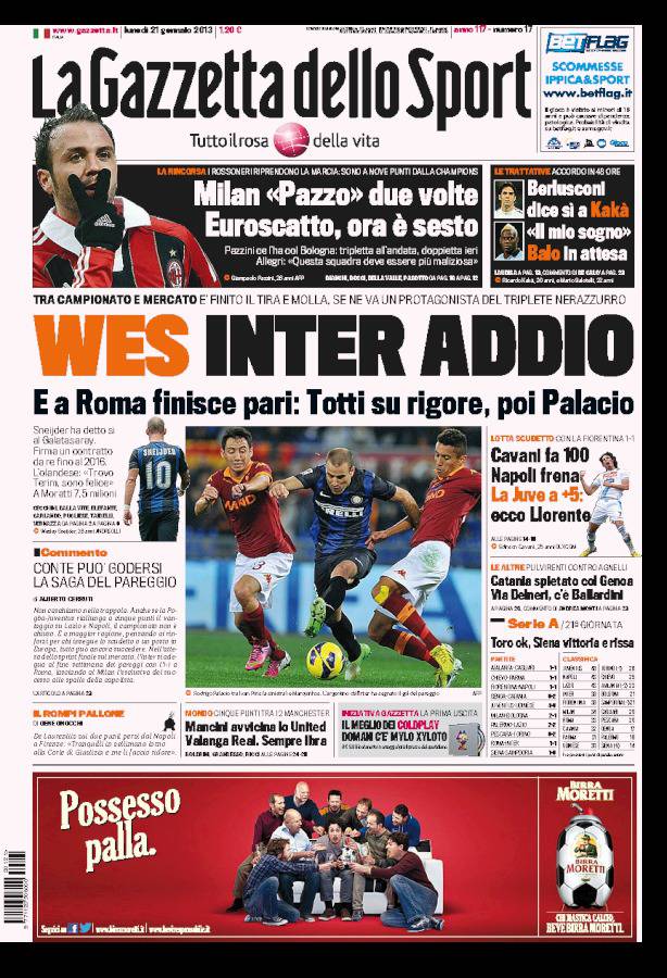 GAZZETTA INTER – Sneijder è un giocatore del Galatasaray. Oggi la firma del giocatore.