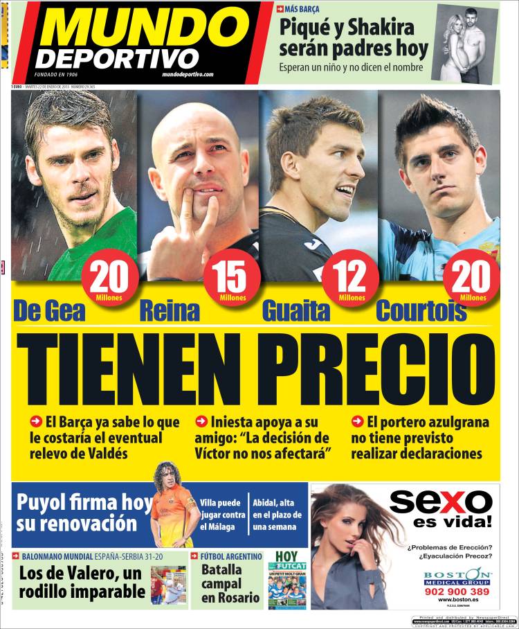 Mundo Deportivo: Hanno un prezzo 22/01/2013 di Admin3 MUNDO DEPORTIVO BARCELLONA – Sul quotidiano Mundo Deportivo si parla dei portieri che sta seguendo il Barcellona. La redazione di Calciomercatonews.com