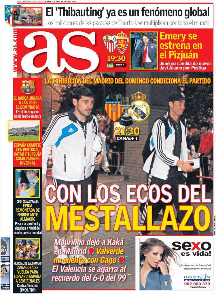 AS REAL MADRID – Il Real Madrid giocherà il ritorno di Coppa del Re al Mestalla. In campionato qualche giorno fa il Real ha sbattuto una manita in faccia al Valencia.