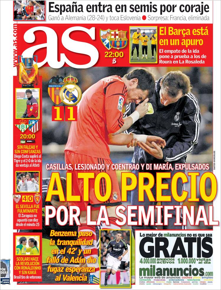 AS REAL MADRID – Il Real Madrid vola in semifinale di Coppa del Re ma dovrà rinunciare a Casillas infortunato e Coentrao e Di Maria espulsi.