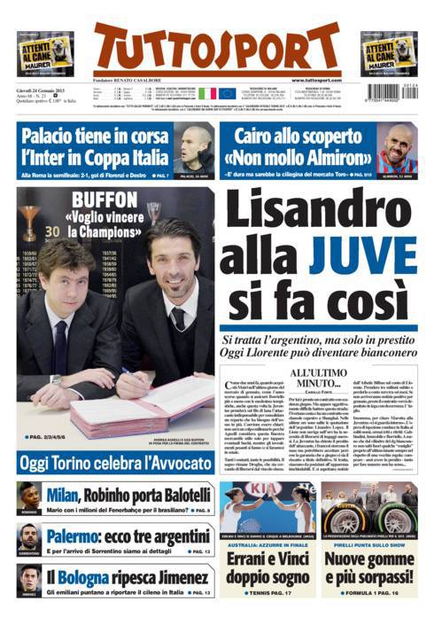 TUTTOSPORT LISANDRO – Su Tuttosport si parla di Lisandro Lopez che potrebbe arrivare alla Juventus solo in prestito.