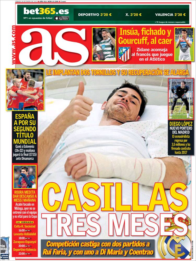 AS CASILLAS – Più grave del previsto l’infortunio a Casillas che dovrà restare fuori tre mesi.