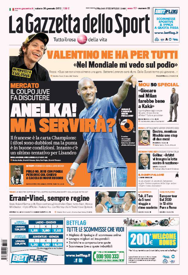 GAZZETTA ANELKA – La Juventus ha preso Anelka. Dubbi sul nuovo acquisto dei bianconeri.