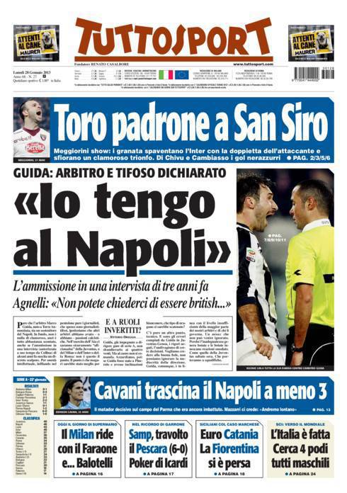 TUTTOSPORT NAPOLI – Su Tuttosport si parla delle dichiarazioni di tre anni fa dell’arbitro Guida.