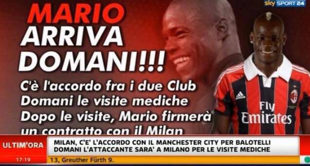 CALCIOMERCATO MILAN – Sarà a Milano in serata Mario Balotelli. Il neo-attaccante del Milan ha lasciato poco fa il ritiro del Manchester City per trasferirsi a Milano dove arriverà in serata. Lo ha riferito il giornalista di Sky Sport Emanuele Baiocchini. In realtà non è da escludere che Mario possa sbarcare domattina all’alba con un volo privato per poi sostenere le rituali visite mediche e aggregarsi con i nuovi compagni.