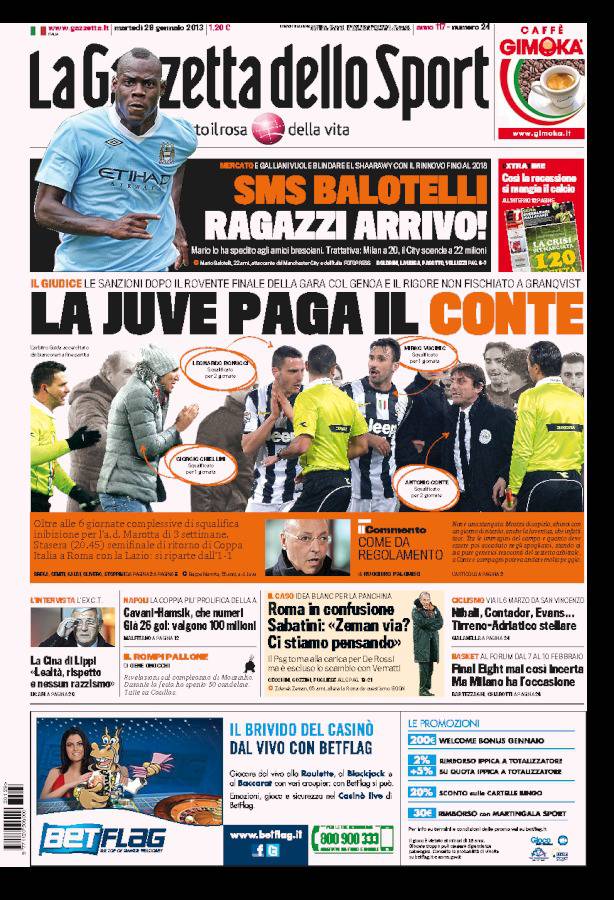 GAZZETTA BALOTELLI – Sulla Gazzetta dello Sport si parla di Balotelli che sta per approdare al Milan.
