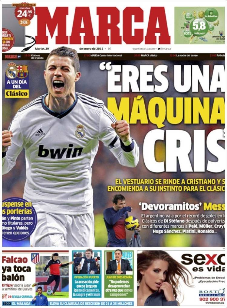 MARCA RONALDO – Ronaldo è carico in vista del Clasico di mercoledì in Copa del Re.