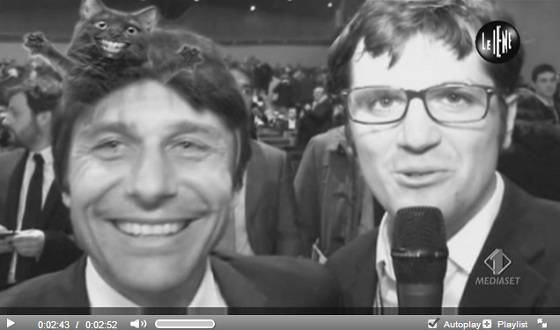 VIDEO CONTE LE IENE – Show di ieri a Le Iene per l’inviato Frank Matano. Il noto Frank ha “intervistato” il gatto di Antonio Conte, ovvero, i capelli dell’allenatore bianconero. Il tecnico della Vecchia Signora l’ha presa sul ridere e intervistato da Matano ha colto l’aspetto ironico della questione stando al gioco.