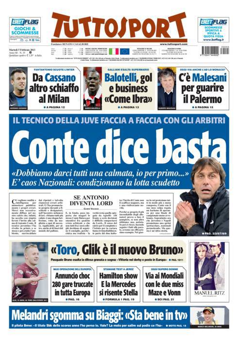 TUTTOSPORT CONTE – Su Tuttosport si parla di Conte che ha chiesto scusa all’arbitro Guida.