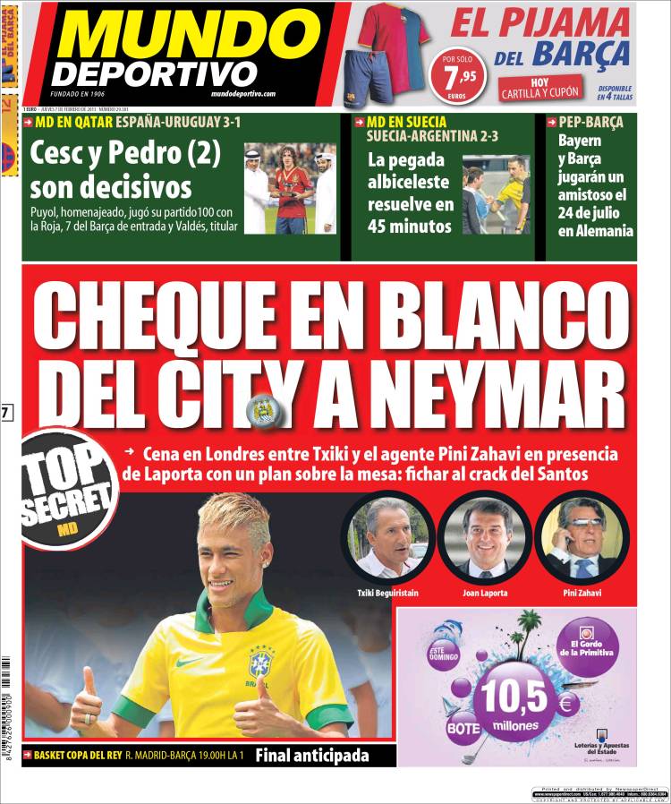 MUNDO DEPORTIVO NEYMAR – Il City ha offerto a Neymar un assegno in bianco e il giovane brasiliano dovrà scrivere la cifra richiesta come ingaggio.