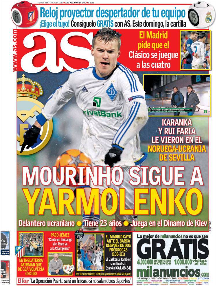 AS MOURINHO YARMOLENKO – Sul quotidiano As si parla di Yarmolenko, attaccante ucraino che piace molto a Mourinho.