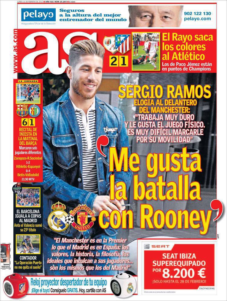 AS RAMOS – Sergio Ramos, difensore del Real Madrid, parla del duello con Rooney.
