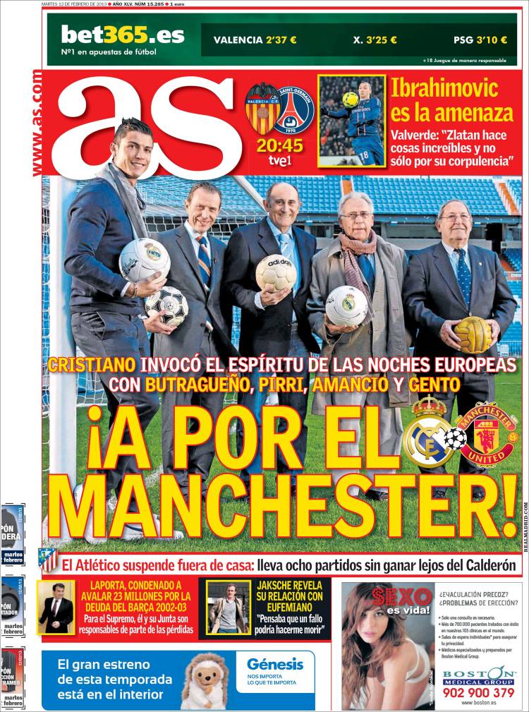 AS MANCHESTER – Sul quotidiano As si parla del Real Madrid che invoca il grande spirito europeo per battere il Manchester.