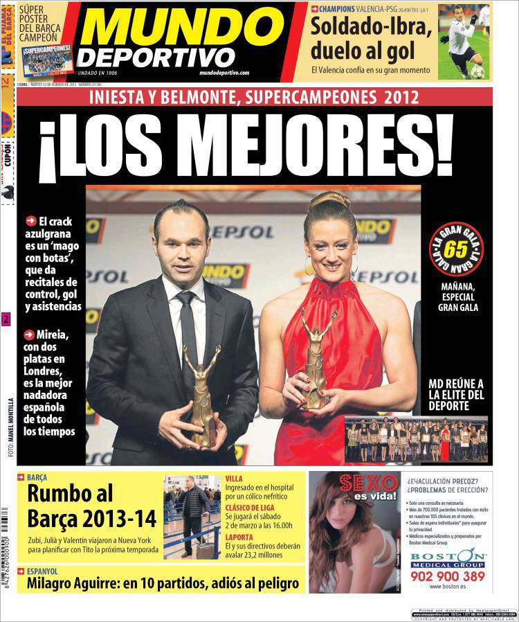 MUNDO DEPORTIVO INIESTA – Sul quotidiano Mundo Deportivo si parla di Iniesta e Belmontes che sono stati nominati supercampioni.