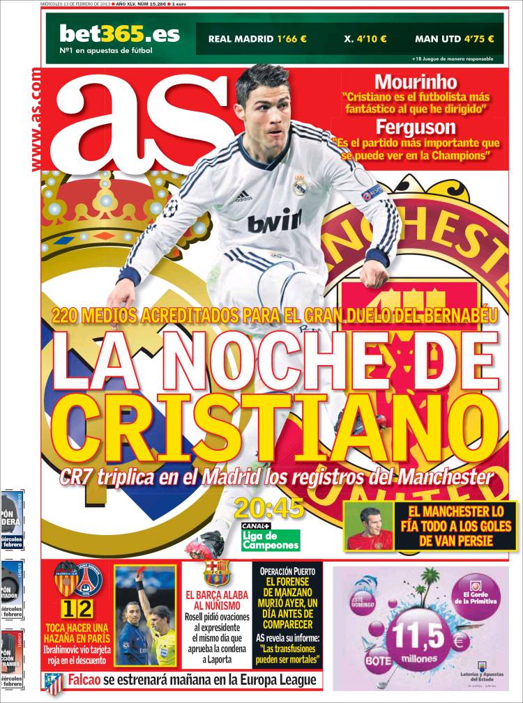 AS RONALDO – Anche il quotidiano As spinge Cristiano Ronaldo nel match contro il Manchester United.