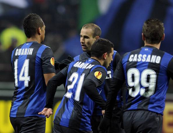 INTER (4-3-1-2): Handanovic 6; Nagatomo 6, Ranocchia 6,5, Silvestre 5,5, Pereira 6; Gargano 6, Cambiasso 6, Kovacic 6,5 (42′ st Jonathan s.v.); Guarin 6,5; Milito s.v. (10′ Palacio 7,5), Cassano 7 (29′ st Alvarez 6). A disp.: Belec, Juan Jesus, Zanetti, Benassi. All.: Stramaccioni.